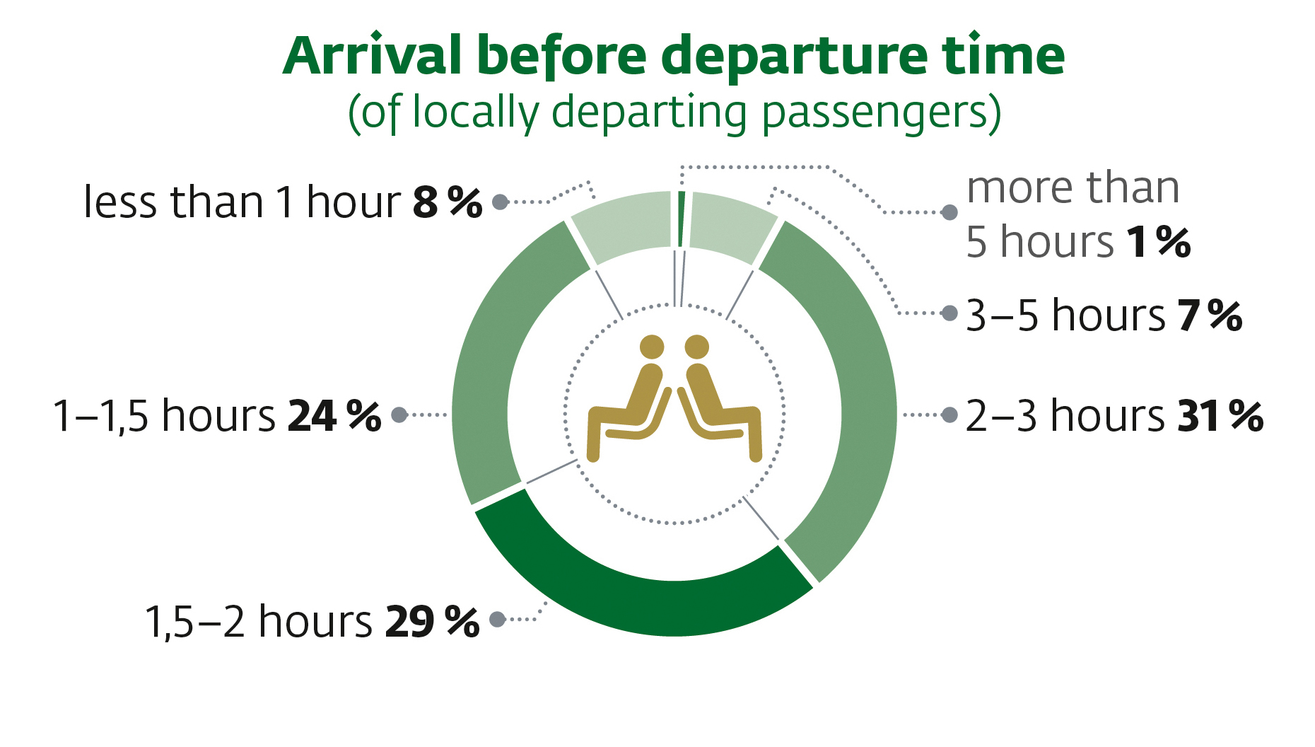 More than 40% of the locally departing passengers are accompanied up to the check-in area.